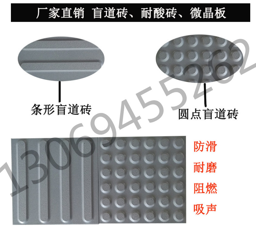 盲道磚是為盲人安全提供的行路方便道路設施。盲道磚由三類磚鋪設,一類是條形方向引路磚,引導盲人放心前行,稱為行進盲道磚,或盲道方向引路磚;一類是帶有圓點的提示磚,提示盲人前面有障礙,該轉(zhuǎn)彎了,稱為提示盲道磚,或盲道方位引路磚;還有一類是盲道危險警告引路磚,圓點較大的,是警視不要超越,前面危險。