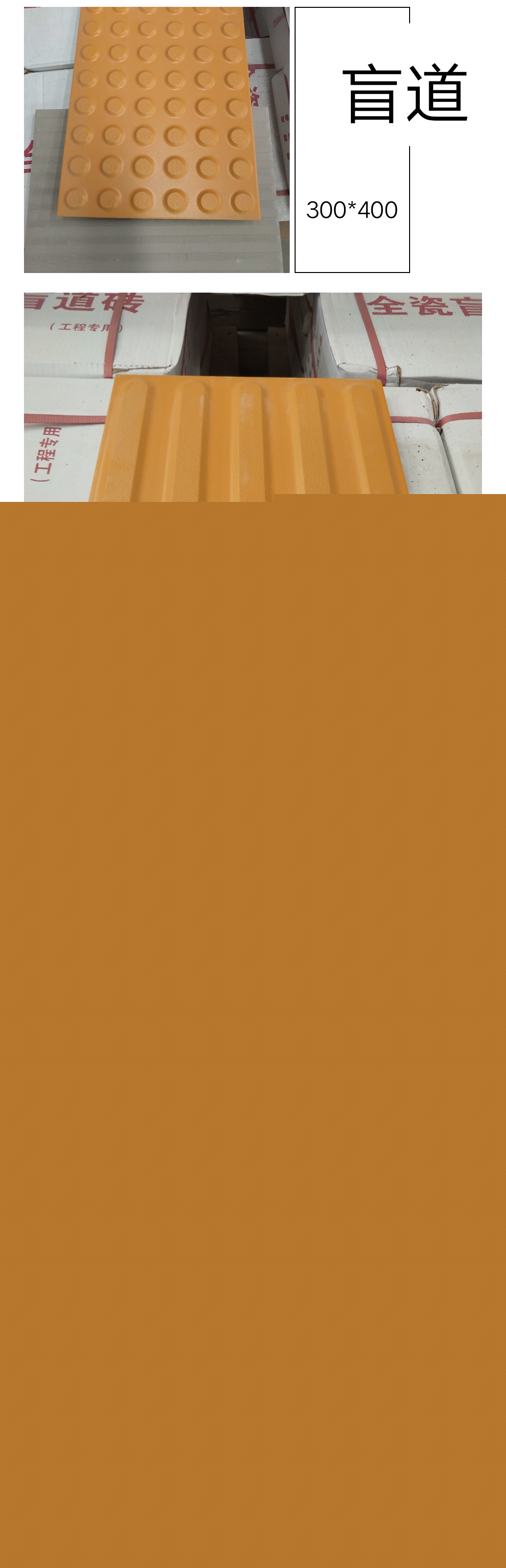 我們的盲道磚是全瓷的,不是塑膠的,也不是水泥,而且尺寸是經過修邊的,不要害怕有誤差,厚度也達標的,顏色是不會掉色脫色的,還有什么疑問直接拿起電話咨詢!18839118777